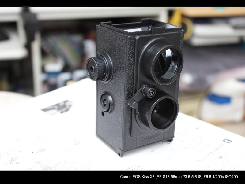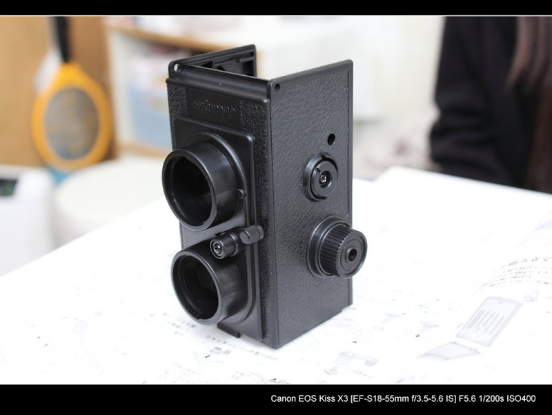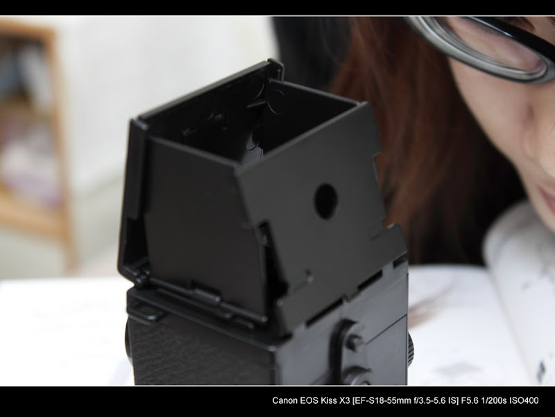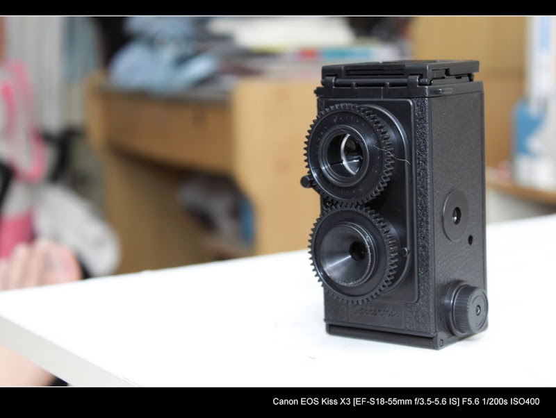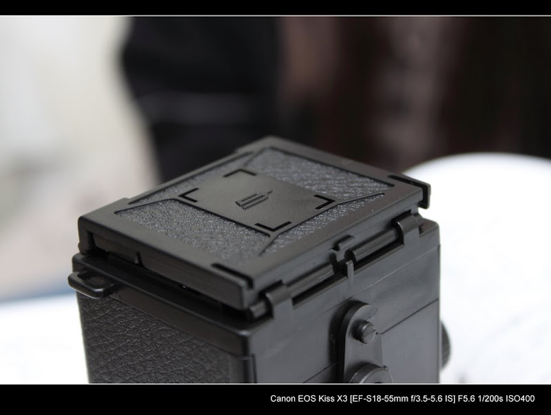 前面的小板手就是快門,按下去有非常濃厚的塑膠聲,一整個玩具感很重。