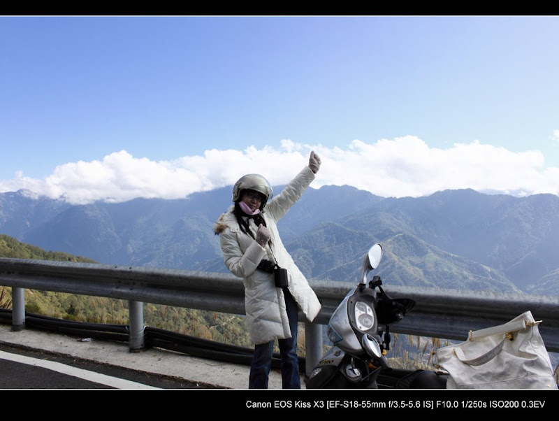 好啦~感動完也拍好照片之後,就要滑車下山了,為什麼不騎車?因為快沒油啦,只好用滑的下山。
