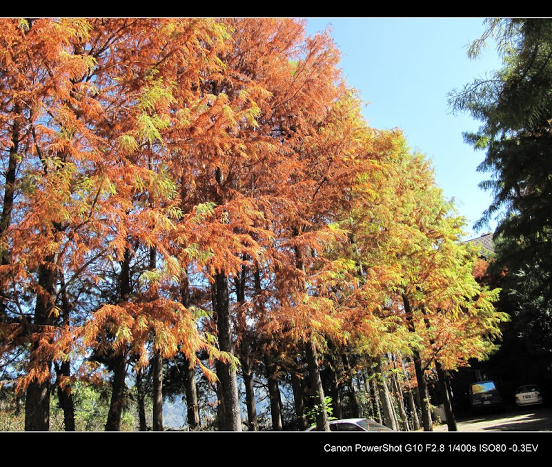 開始轉紅的樹林,我記得這不是楓葉樹,是另一種樹,也是很漂亮。