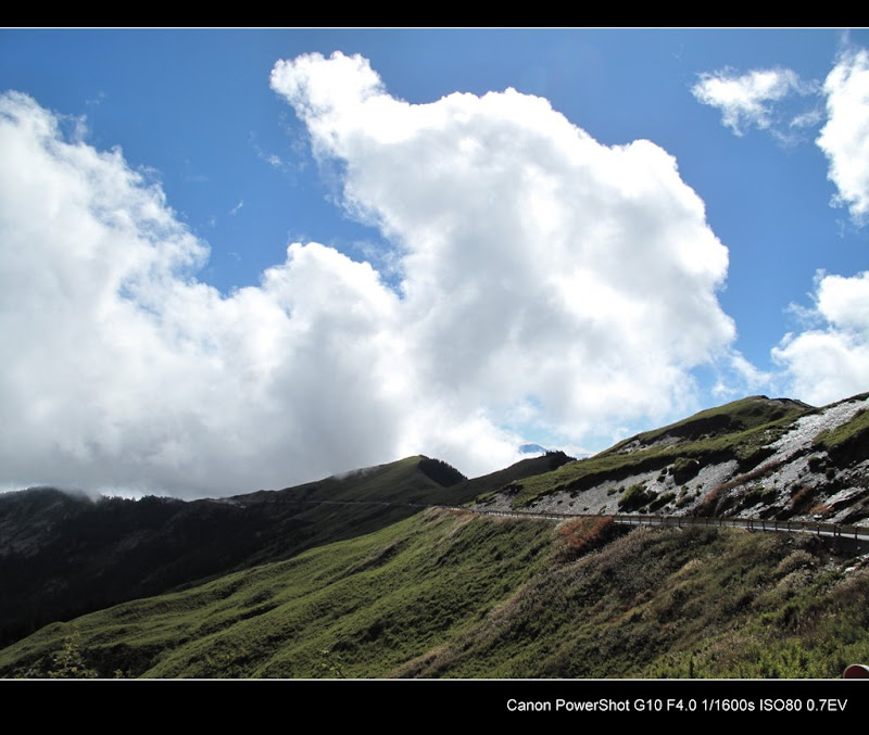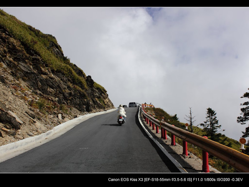 就這樣熄火又走走停停,慢慢一點一滴的推進,路上還有兩個超強的阿伯騎單車在征服武嶺中,武嶺除了坡度以外,另外一個就是空氣稀薄,相較於平地,2000多公尺上,稍微走點山路,還難受的(我得說我真的該減肥了),在這邊替兩個阿伯豎起大拇指說:你真行!