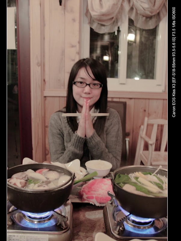 好啦~終於可以用餐了,住宿所附帶的晚餐是...高山小火鍋。