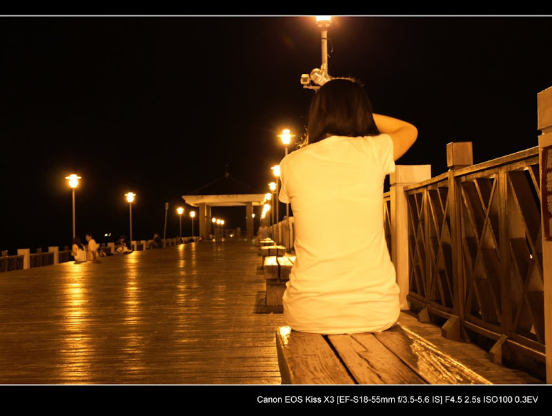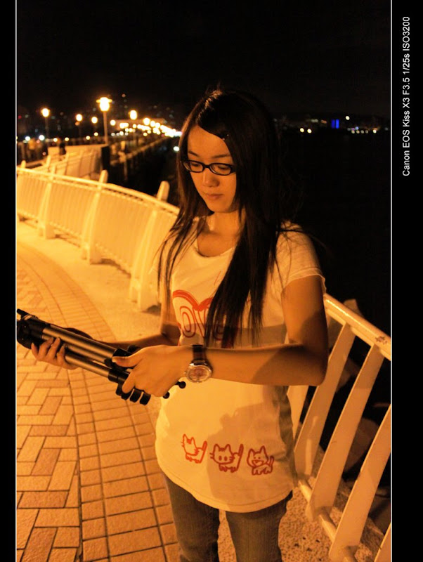 雖然說是第一次,其實是第二次,上次去敦南誠品拍的簡直要用慘不忍睹來形容,所以就當做沒發生吧~,剛好昨天呆呆文心情悶悶的,決定帶她去走走吹吹風,我們就去了漁人碼頭,人很少,非常的適合今晚寧靜的氣氛。