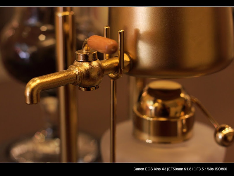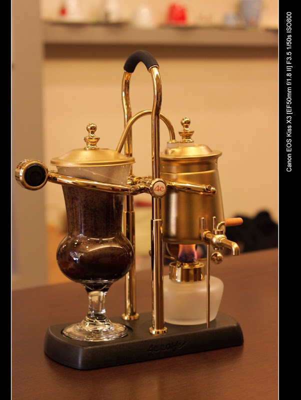 桌上有個閃亮的比利時咖啡壺,這玩意呢,又稱作平衡式賽風壺,也是利用虹吸原理來烹煮咖啡,操作非常簡單,簡單來說,就是記得放水、記得放咖啡粉、記得點火,就是這麼簡單,我講的太隨便了?ok..