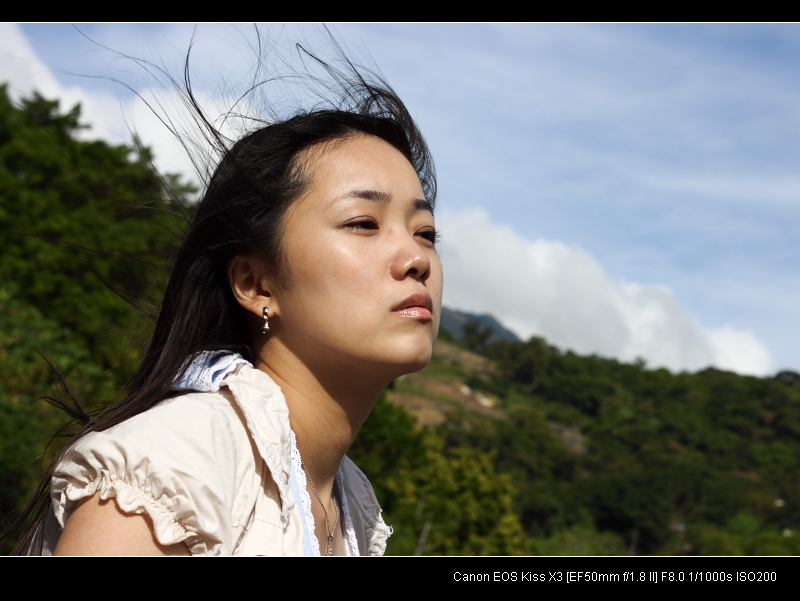 其一,下巴的肉就是不能跑出來,今天試了滿多張這種角度的,不過還滿難抓的,過或不過都是不好,加上今天風很大,逆光就順風,順光就逆風,一整個就是讓呆呆文非常的為難啊@@(辛苦妳囉~)。