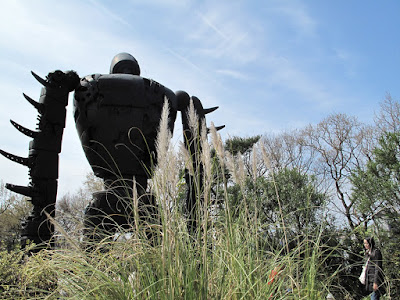(呆呆文微笑的毀滅世界中~這也是天空之城裡面的,動畫裡面可用飛行石加上這個石頭來操作全城的武器跟機器人)(使用方法如上~輕鬆又方便的幫你毀滅世界!)(呆呆文:看到沒?!這就拉普達的雷電啊~!科科...)(沿著小路出來就可以看到巨神兵沒落的背影...)到了三樓是禮品店,我們選購了一些小東西(當然也有賣飛行石喔,當然~就算買了念了毀滅咒語,博物館也不會整個垮掉飛向宇宙),二樓則是展覽跟介紹宮崎駿的工作室,裡面有很多很多的分鏡頭,塗鴉、手稿等等~這層樓可以看的東西真的很多,真的要用心看可以花上兩三個小時。其實應該是要從一樓開始走的,就會了解,整個動畫的製作過程~(結果我跟呆呆文先衝到樓頂拍照去)