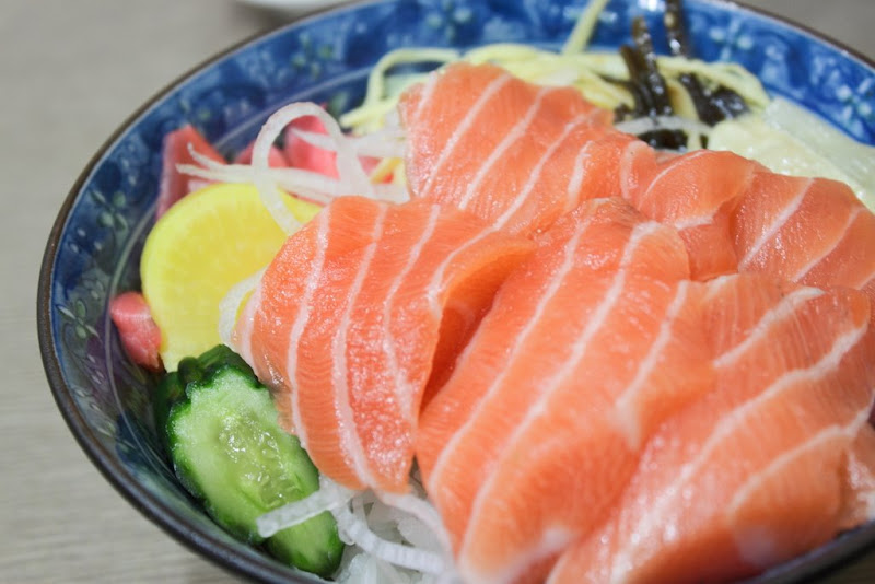 結論是:生魚片新鮮,好吃到不行,可是裡面的白飯,不太能接受,大概是因為怕飯的溫度去影響到生魚片的口感吧!但是也太硬了吧...