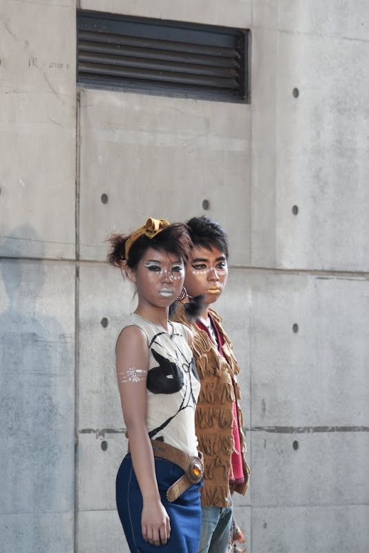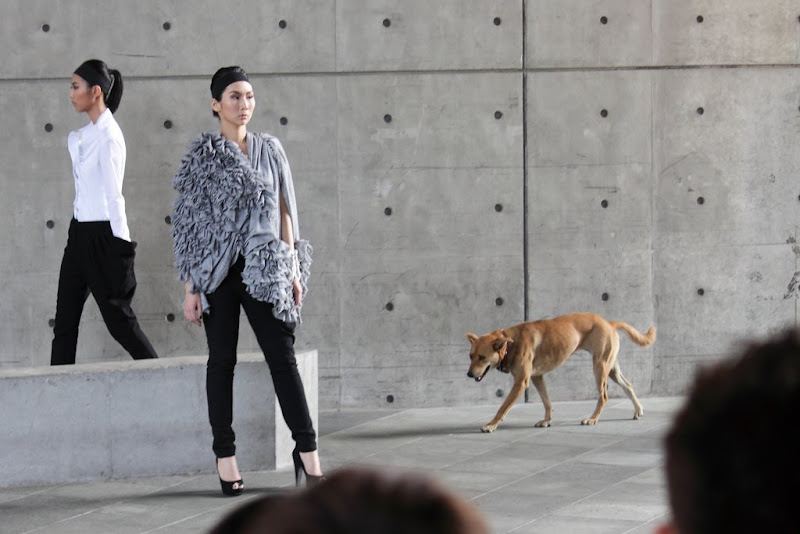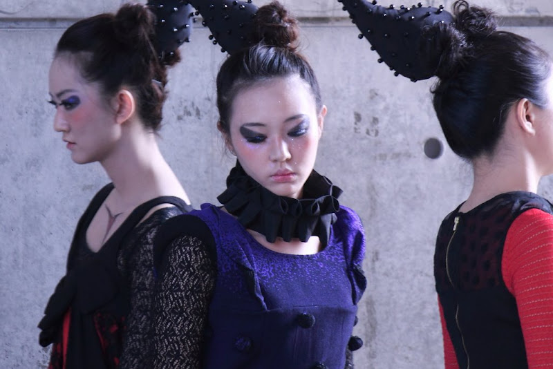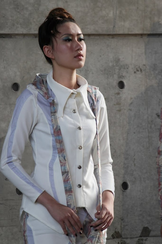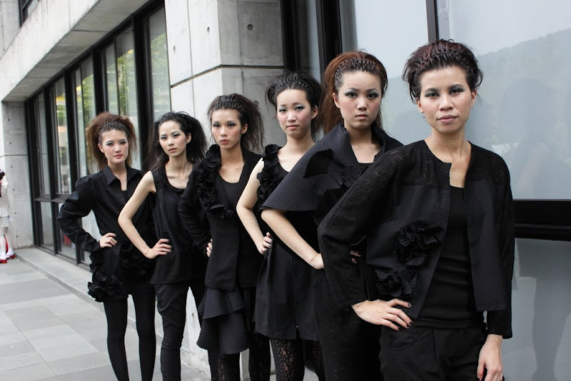 這次的攝影體驗非常的棒,也非常的累人,要不是最後可以坐在椅子上,我想我晚上根本沒辦法去工作了,這樣辛苦是很值得的,特別是看到許許多多優秀創意、線條以及色彩,覺得下午跟公司請假就非常值回票價了!在拍攝上,一開始由於我太晚上去,導致好位置早就已經佔光了,我甚至要站在廢置的桌椅上拍攝,最後才慢慢卡進最前排椅子上(拍到最後幾乎是癱軟在椅子上),光線來說,雖然我從開始到結束都是逆光,並沒有對我造成很大的困擾(但是一開始是),我覺得MD一些表情,在逆光上表現的更加強烈,移動到前排後我才開始使用閃光燈,也可惜的是,有些MD離後面的水泥牆太近,使得閃光燈打出來的影子就印在後面,這些卻是我沒避免掉的,這次的挑戰並沒有那麼簡單,重點是服裝秀的本身,每個團隊只有一分半的時間可供走秀,每團隊大概都是6名,每個人好的角度好的姿勢就是那麼一瞬間,所以這次最大的難度就是人的本身,加上每個團隊走秀的方式都不一樣,幾乎都靠感覺來拍攝(真的也好在固定了曝光成功率才大大提高,我也省了不少後製的時間),另外值得注意的是,服裝的特性以及運用,材質布料的感覺,都是以前我拍攝的時候沒有想過的)。