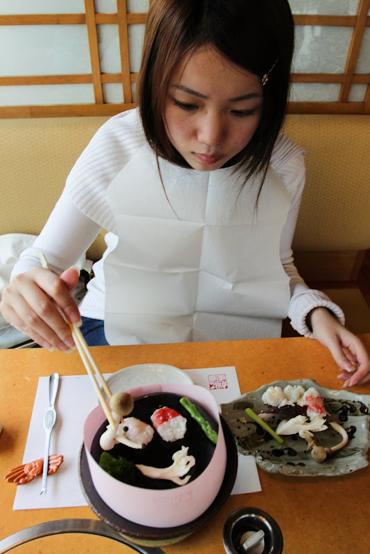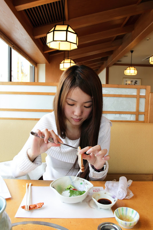 在用餐的途中,發生一個小插曲,讓我們見識到有別於台灣不同的服務業,其中一個女將在收碗盤的時候,不小心打破了,讓我跟呆呆文嚇了一跳...
