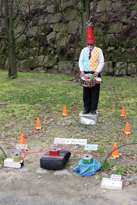 原來這是街頭藝人的一種,你只要投錢在前面的桶子裡面,會表演對應的橋段,其餘時間會像這樣待機著!滿有趣的~