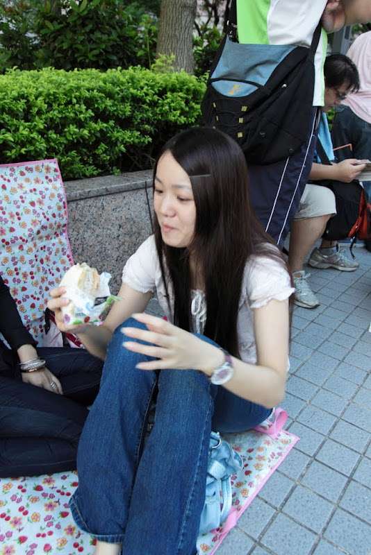 呆呆文手上拿的是我們四個人的排隊券,我們在400的前面,也就是說我們五點半多到達,也已經落到上午場的後段班了!真是太誇張了~不過稍等在會場裡面聽到更多誇張的事情。