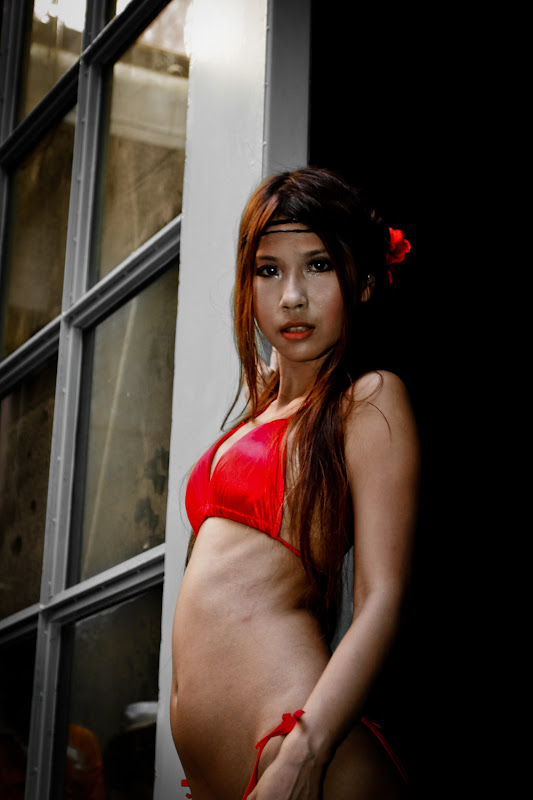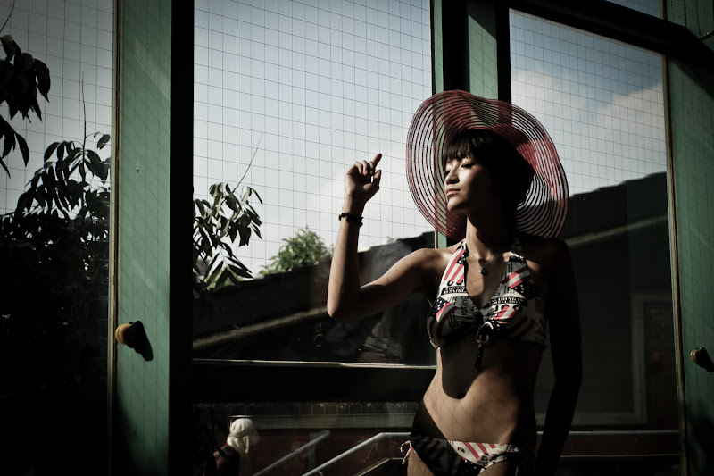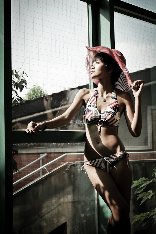 後製上,看到這兩片大門有著非常搶眼的藍綠色,我決定把這部份的彩度調低,稍稍提高紅色強調泳奘以及橙色提高皮膚的質感,由於她的肢體動作非常豐富,在對比上也有提高一些,增加肌肉與骨的線條,我真的很希望我拍的是raw啊~ 第一次覺得自己那麼無聊的堅持害了自己。